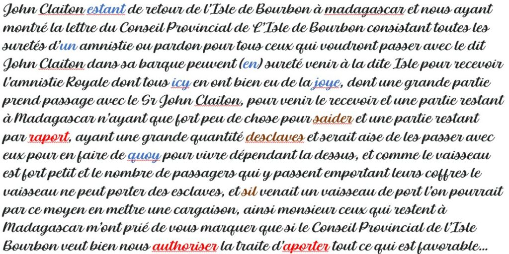 Les 8 articles précédents n’avaient qu’un seul but : démontrer que La Buse n’était pas un simple gars d’un quartier marins de Calais sans éducation et sans argent. Pour s’en convaincre, ci-dessous un extrait de la lettre qu’il envoie au gouverneur le 25 mars 1724 en réponse à l’offre d’amnistie du Conseil Provincial de l’île Bourbon :
